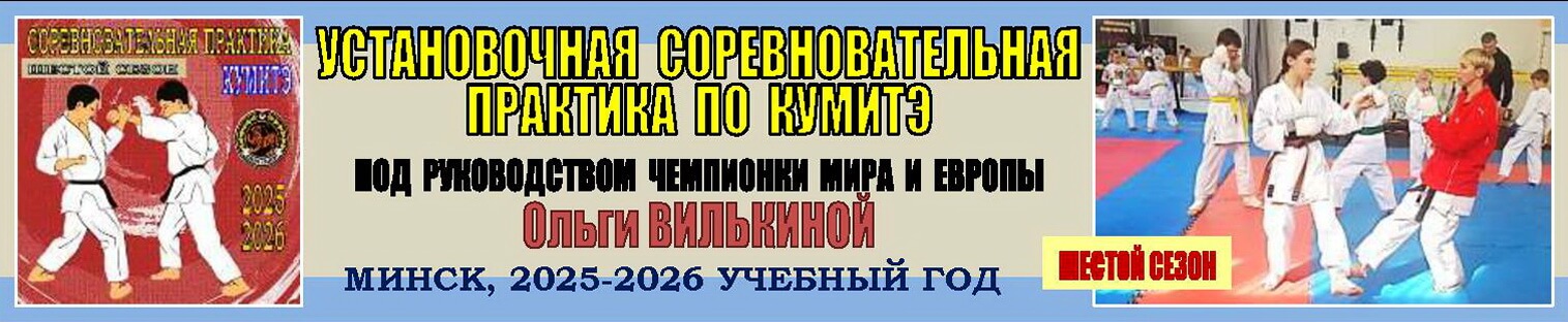 21 сентября 2025 года. Состоялась первая сессия 2025-2026 учебного года (45-я с начала проведения) соревновательная практика по свободному кумитэ под руководством многократной чемпионки мира и Европы, мастера спорта Ольги Вилькиной (VI дан). В организации мероприятия, проведении практических занятий и судействе выступлений спортсменов ей помогали заслуженный тренер Беларуси Андрей Вилькин (VIII дан) и призер чемпионата Европы, чемпион Беларуси по кумитэ Сергей Лукашевич. В работе участвовали 13 спортсменов из клубов Академия каратэ, Барс, Кэнкай. Основной задачей проведения первой сессии практики стала подготовка к участию в главных стартах нового сезона по шотокан каратэ-до - открытом кубке БФШК Приз открытия сезона памяти А.В.Медведя 12 октября в Минске и чемпионате/кубке мира SKDUN 22-28 октября в Бендзине, Польша.