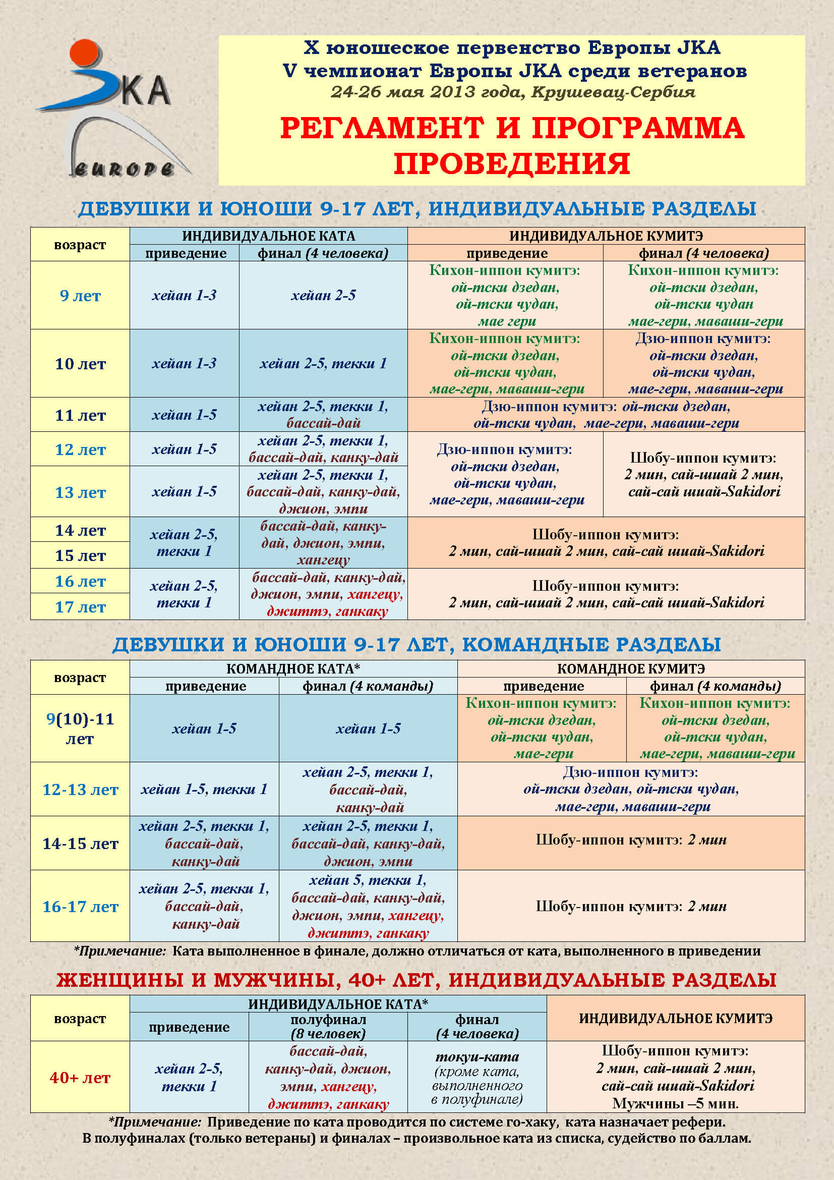 Чемпионат/первенство Европы JKA-2013. Дорожный блокнот: