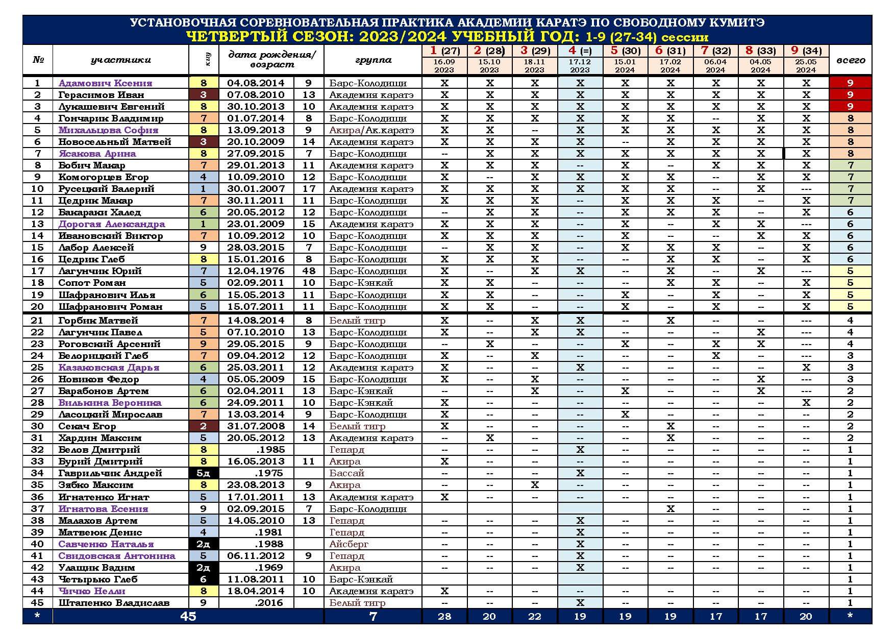 Практика кумитэ 2023-2024/четвертый сезон: Посещение (1-9 сессии)