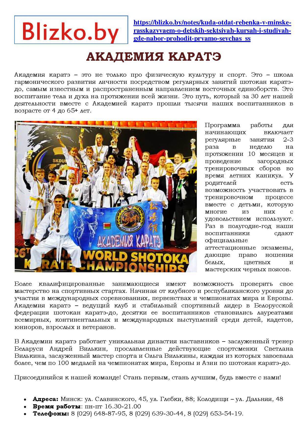 Blizko.by: Академия каратэ (статья) Blizko.by: Академия каратэ (каталог)